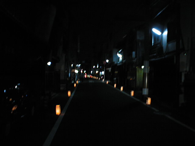わかりにくいですが、行灯でライトアップされた姉小路通です