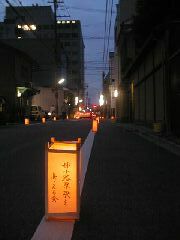 | アーバネックス前。画面左上は45年前に使われていたガス灯 | 柳馬場通と行灯 | ||