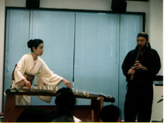 琴を演奏された福原左和子さんと尺八演奏のジョン・海山・ネプチュ−ンさんとの息のあった絶妙な演奏ぶりで、「春の海」とオリジナル曲と、「Take5」etc.を堪能できました。