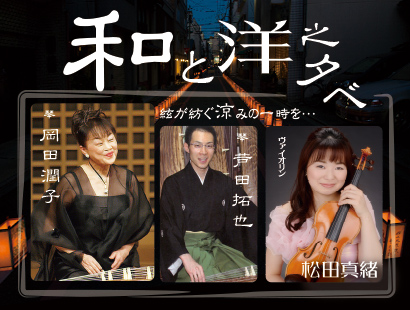 今年は、箏曲と弦楽のコラボレーションです。果たして、どんな楽曲の一時が紡ぎ上がりますでしょう。当日のお楽しみです。